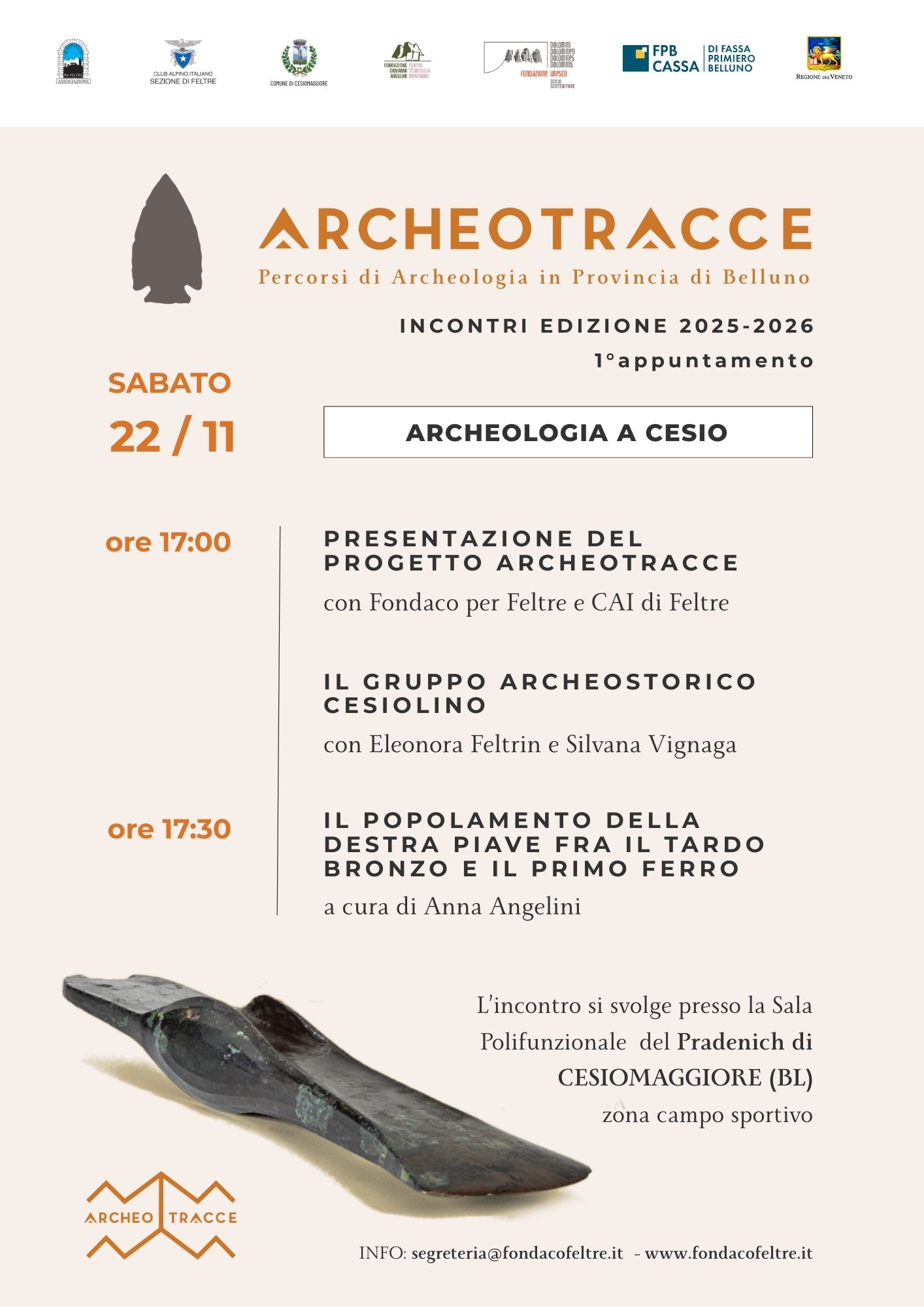 La rassegna proporrà poi tra la primavera e l’estate 2026 una serie di Archeotrekking alla scoperta diretta dei territori in collaborazione con il CAI, il gruppo TAM di Feltre e le realtà locali. Queste uscite permetteranno di scoprire i luoghi trattati durante le conferenze in prima persona.